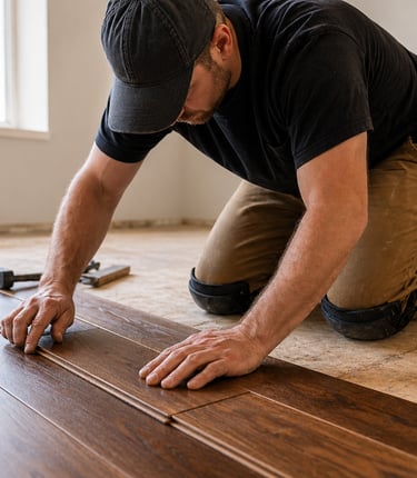 Expert installation of solid and engineered hardwood floors for a clean, durable finish.
